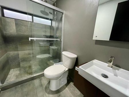 • Dos recámaras, cada una con baño propio, equipadas con regaderas y canceles de vidrio.